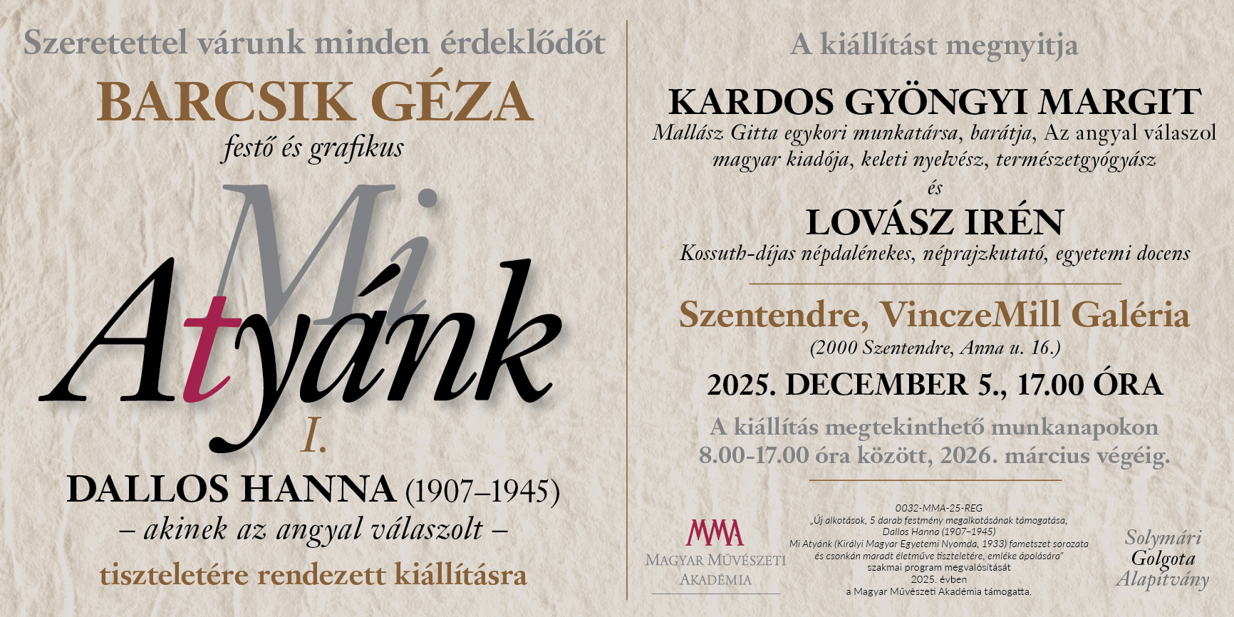 MIATYÁNK Barcsik Géza grafikus kiállításaDallos Hanna tiszteletére